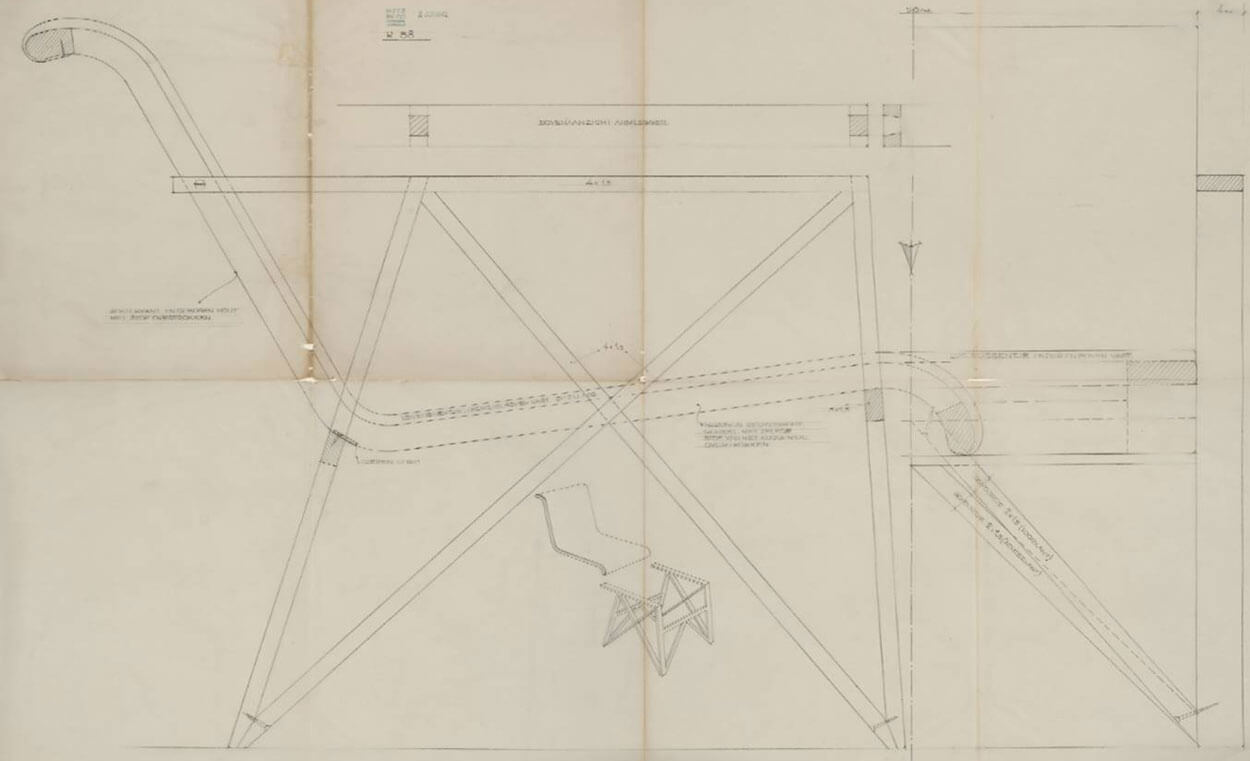 In addition to the Armchair for Metz&Co, Rietveld also designed other furniture for the luxury department store. In 1932 Metz&Co also commissioned Rietveld to design a showroom for his own furniture, on top of the roof of the department store. The dome that Rietveld designed became the place where many major foreign designers such as Le Corbusier, Mies van der Rohe and later Poul Kjærholm first presented their furniture in the Netherlands.