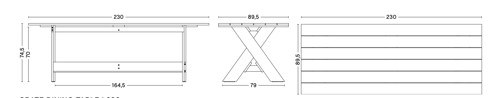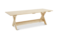 The Crate dining table is crafted with respect for the original design and features the same precisely balanced proportions and transparent construction aimed at low production costs and optimal assembly processes. The table is available in two different lengths, with a rectangular tabletop and diagonal crossbars.