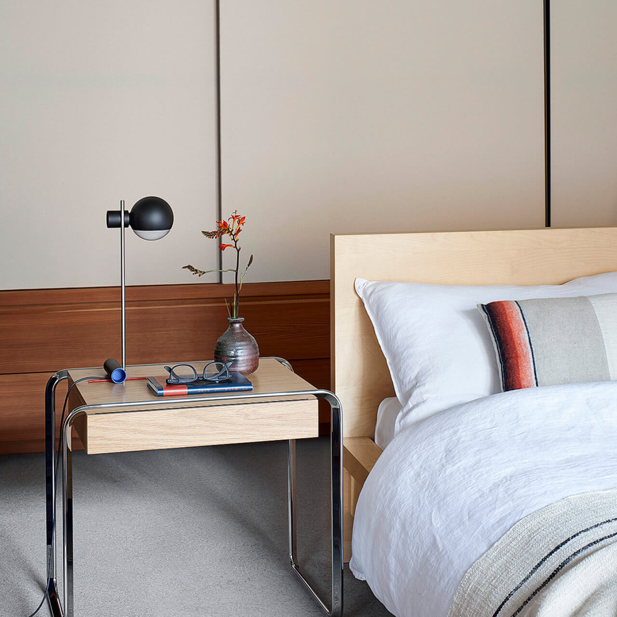 Until recently, the small table lamp L25 by Rietveld was a treasure that only a few had discovered. Rietveld designed this table lamp in 1925 in strict geometric shapes. Surprisingly modern for its time and never serially produced. Tecta already produced Rietveld's L40 lamp and took the initiative to market this jewel. The exact dimensions of the original drawing were used as a starting point for the refined small-scale series production.