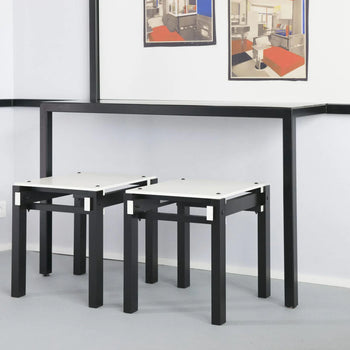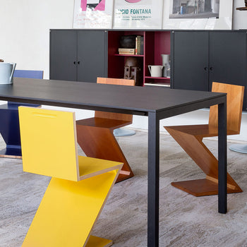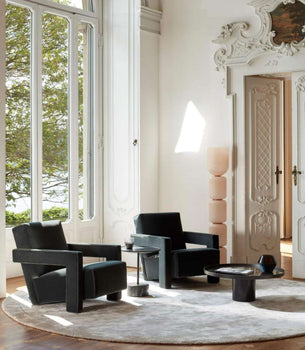 Rietveld's collection consists of a series of iconic designs he designed between 1918 and 1963, such as the Zig-Zag chair in 1934, the Steltman chair in 1963, and the Press Room chair in 1958.
