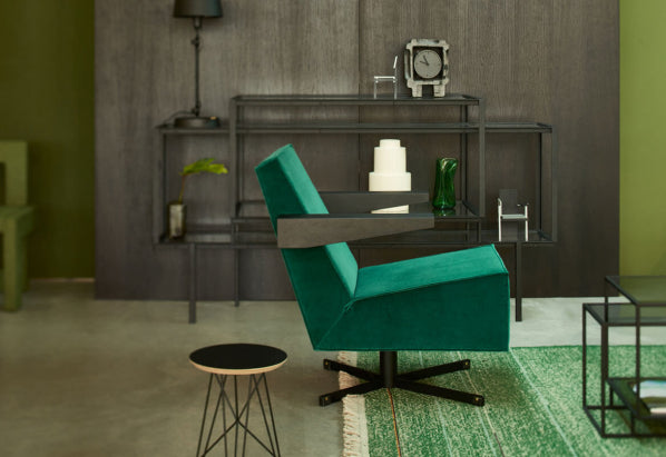 The Press Room Chair was designed in 1958 by Gerrit Rietveld for the UNESCO building in Paris. Rietveld designed the armchair as a comfortable lounge chair for journalists at the reading table in the pressroom. However, due to the tight budget and limited time, the design was not carried out and Rietveld was forced to replace it with furniture he had made for the Brussels World Exhibition earlier that year. Fortunately, the original designs, drawings and models have been preserved, which meant that the Press Room Chair was made available in 2014.