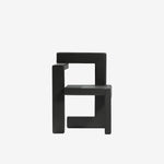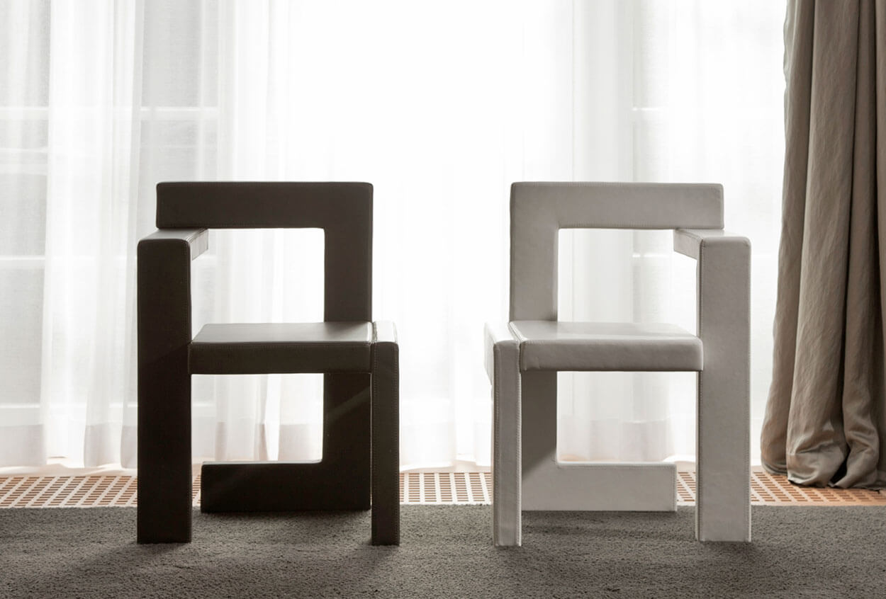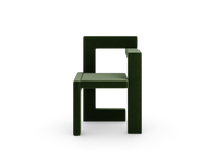The Steltman chair was constructed on the basis of Rietveld’s original 1963 drawing. The design is available in a solid oak version and an upholstered version in felt or leather. The wooden version is made of solid quarter sawn oak, matt lacquered or stained in whitewash or black{. A felt or leather version is available in a variety of colours.