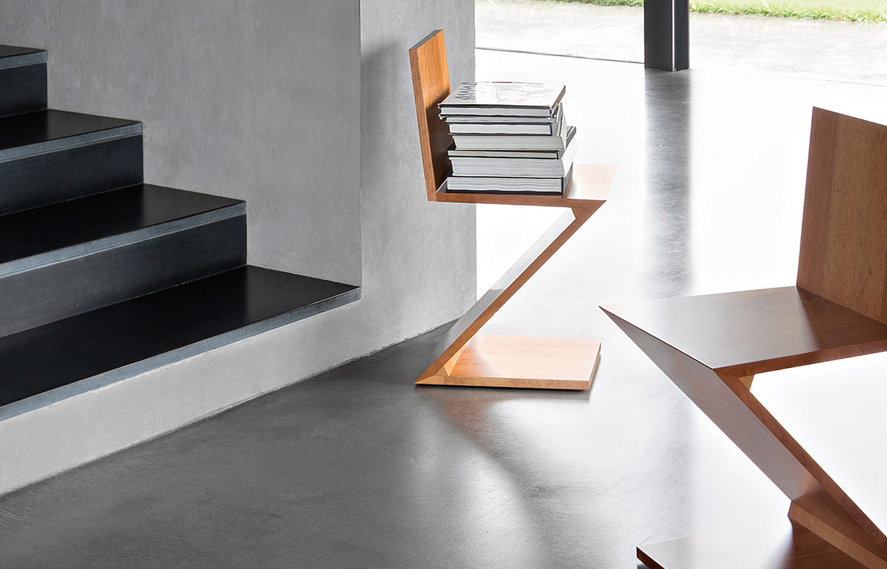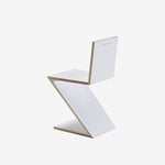 Rietveld heeft gedurende zijn carrière meerdere stoelen ontworpen die naadloos uit één stuk materiaal gemaakt moesten worden. Het was een soort ultieme constructie puzzel voor hem. De Zig Zag is hier een variant op, weliswaar uit één stuk plaat maar niet naadloos en juist met zeer gewaagde constructie. De Zig Zag wordt gezien als het zuiverste voorbeeld van de synthese tussen vorm, functie en constructie in het oeuvre van Rietveld.