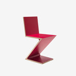 Het klassieke model van de Zig Zag stoel ontstond pas na een aantal experimenten in diverse materialen. Pogingen om het ontwerp uit fiber, stalen buis, multiplex en plaatstaal te maken, mislukten. Uiteindelijk bleek de uitvoering van vier houten Bruynzeel kastplanken het makkelijkste en het sterkste te zijn. Rietveld heeft in de jaren dertig en veertig van de twintigste eeuw verschillende variaties op de Zig Zag stoel bedacht. Vrijwel alle varianten zijn door Metz & Co in productie genomen. De huidige versie van Cassina is prachtig uitgevoerd, zonder schroeven maar wel met zichtbare zwaluwstaart verbindingen. De stoel is beschikbaar in naturel kersen en in naturel essen, rood, blauw geel, wit en zwart.